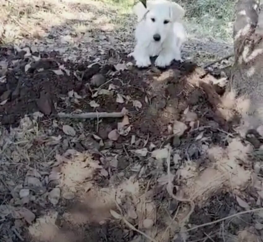 As Cespedes dug a hole for Viejito’s body, the puppy lingered close by.