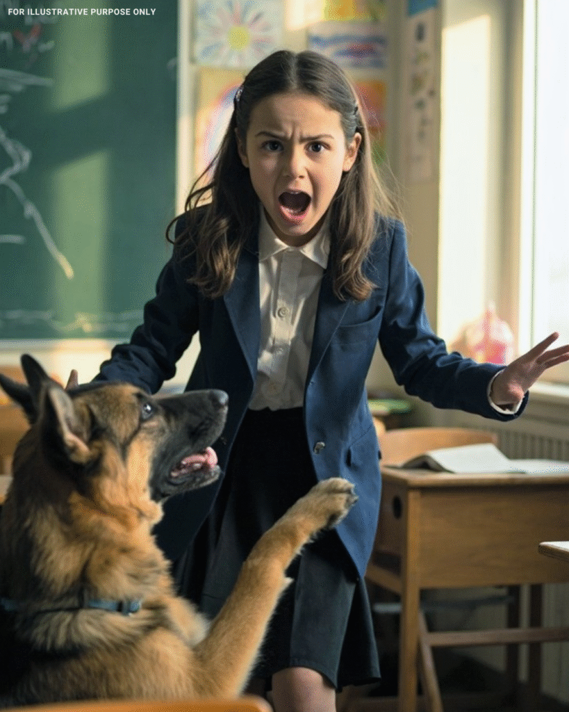 The German Shepherd charged, barking loudly, toward a girl sitting in the third row. She was a quiet, reserved student named May—usually she sat at the back of the class.