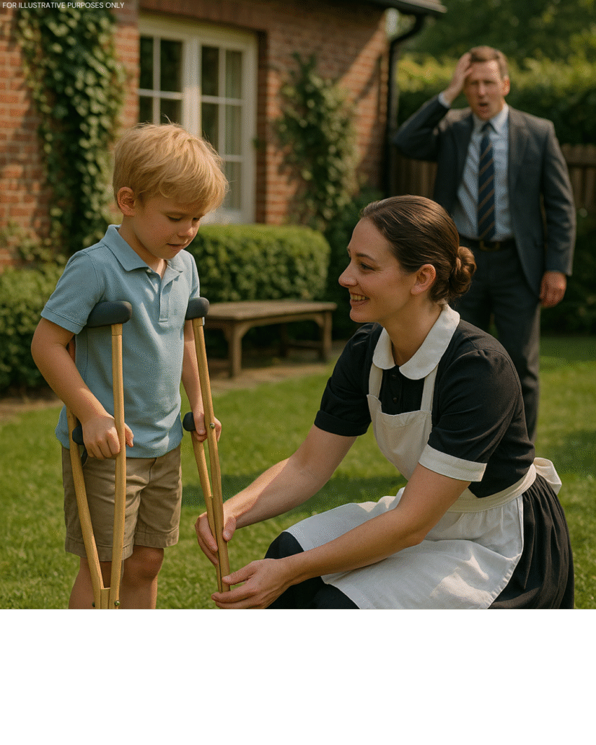 When Vincent Moreau stepped through the doors of his lakeside villa earlier than usual, he expected silence and polished marble floors. Instead, he froze at the sight before him: his son, Thomas, carefully lifting one leg after another with the help of Isabel, the young housekeeper. She knelt beside the boy, holding his shoulders steady, whispering words of encouragement. For years Vincent had buried himself in business, believing wealth could shield his family from pain. Now, watching his son struggle and smile at the same time, he felt something inside him stir for the first time in years.
