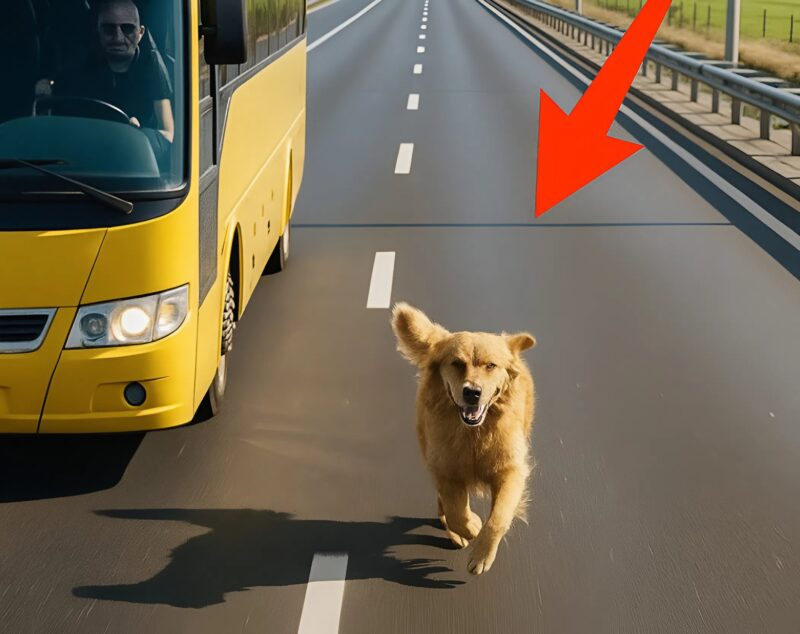 Suddenly, the dog sped up and overtook the bus at a crazy pace. It stopped right in the middle of the road and started barking, growling. The driver had no choice but to slam the brakes. The tires screeched, the bus jerked and stopped.