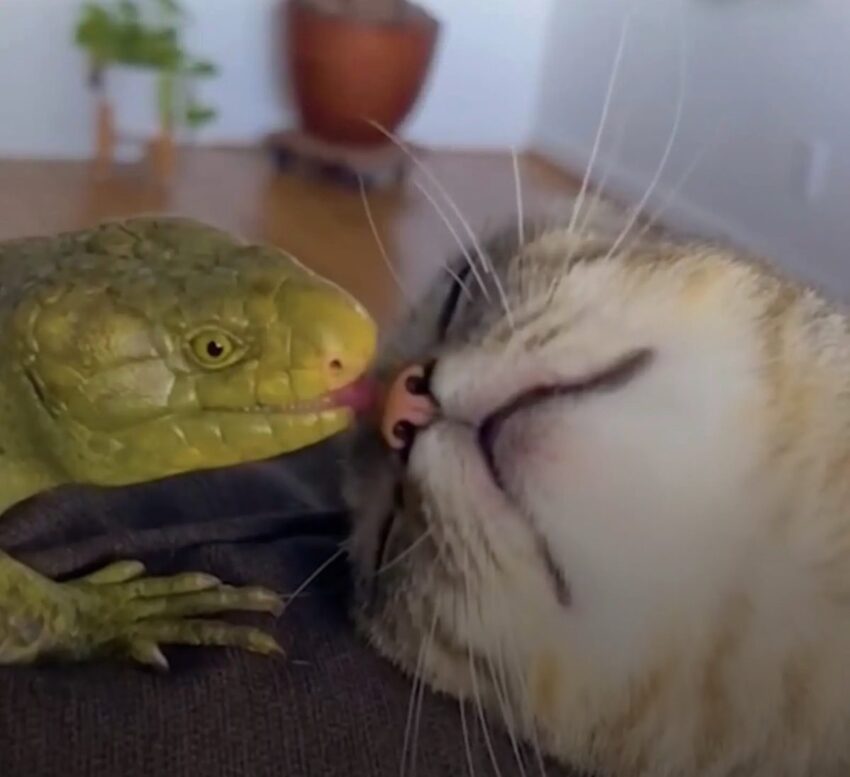 Junior, on the other hand, is typically a territorial lizard, who’s wary of having others in his space. But when he’s with Atlas, Junior has no problem letting his guard down.