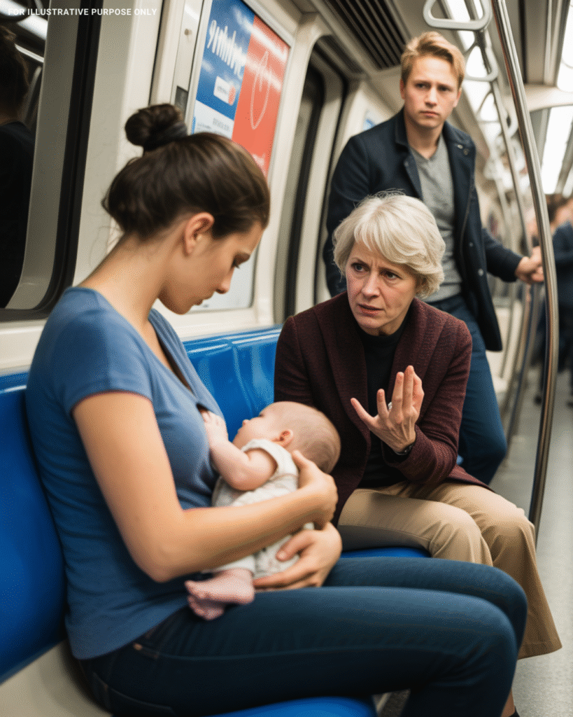 Without waiting for him to calm down, she pulled out a blanket and began nursing her child right there in the subway car. The passengers around her behaved respectfully—some turned toward the window, others pretended not to notice.